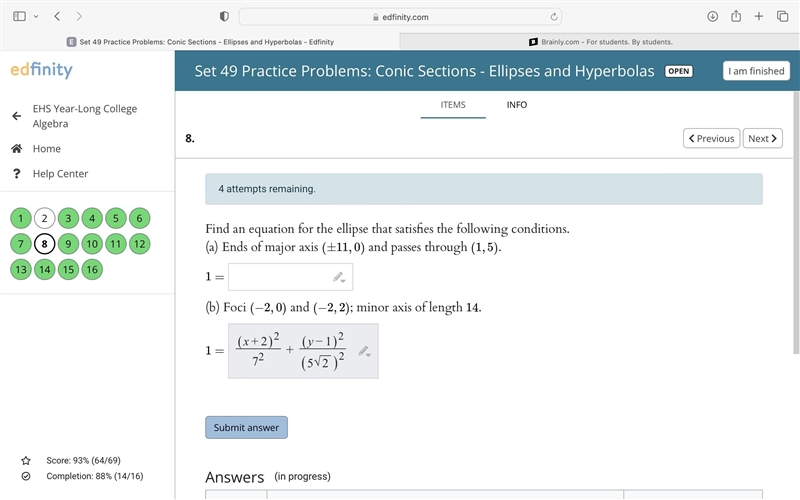 (x/11)² + (y/b)² = 1