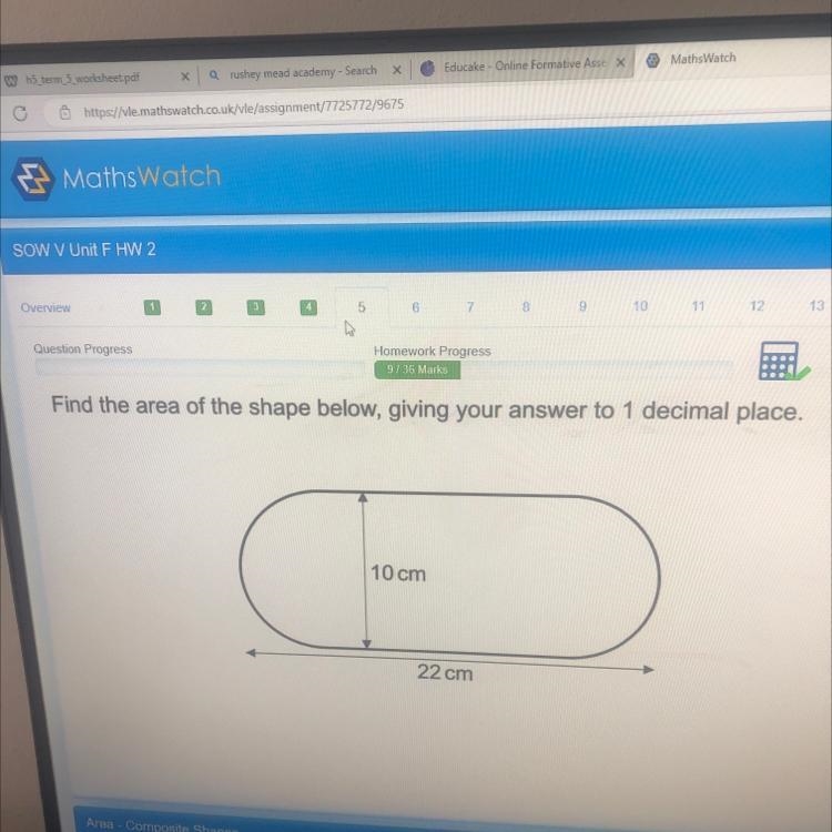Consists of a rectangle, area 12 x 10 = 120 cm^2