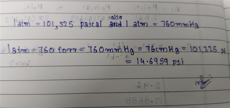 Conversion between torr, atm, mmHg, and psi A) Atmospheric B) Hydraulic C) Pneumatic D) Thermodynamic