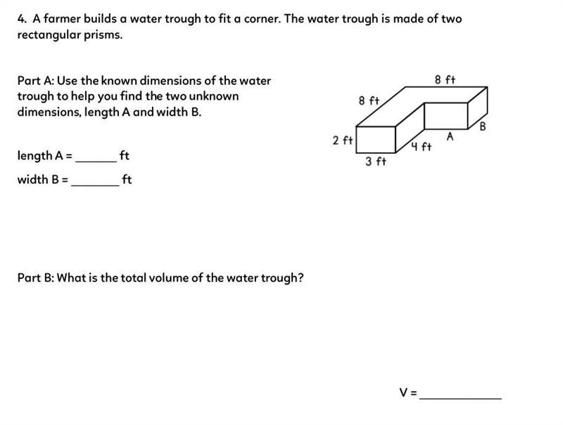 total volume = (8 × 3 × 2) + (4 × 5 × 2) = 88 ft³
