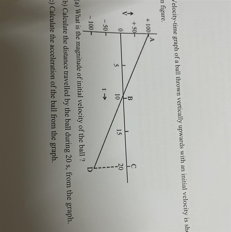 (b) To calculate the distance traveled by the ball during 20 seconds, we need to find the area under the velocity-time graph for the given time interval. From the graph, we can see that the graph is a triangle. The formula to calculate the area of a triangle is:
