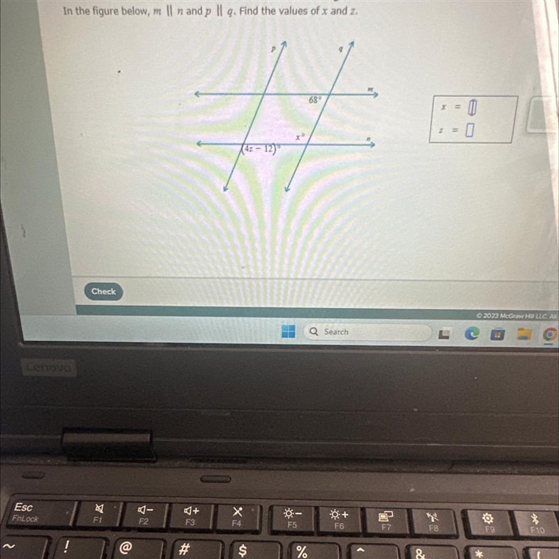 We can find the measurement of angle x since ∠x and 68° are same-side interior angles and they are supplementary.