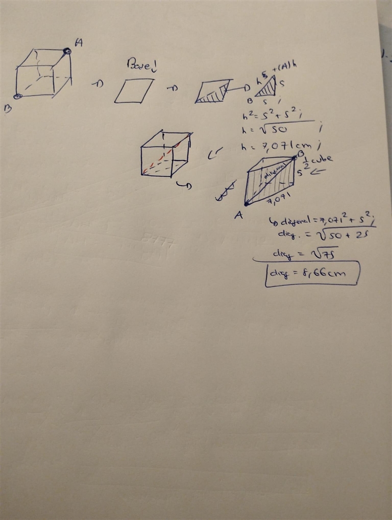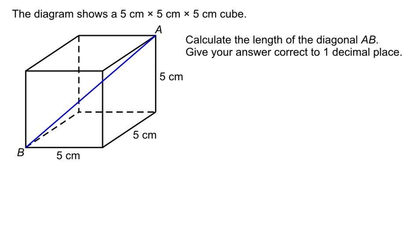 Calculate the length of the diagonal AB. Give answers correct to 1dp