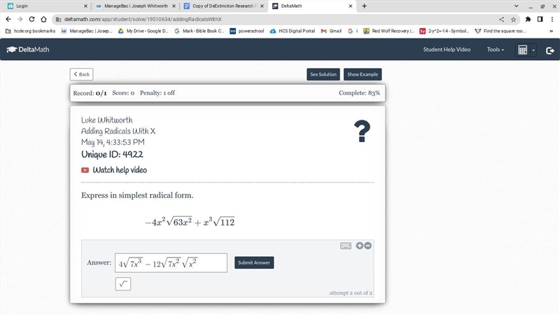 1.2: Find the largest perfect square that we can factor out of 63. It's 9 as 3^2 = 9 and 9 * 7 = 63. Furthermore, √x^2 simplifies to x: