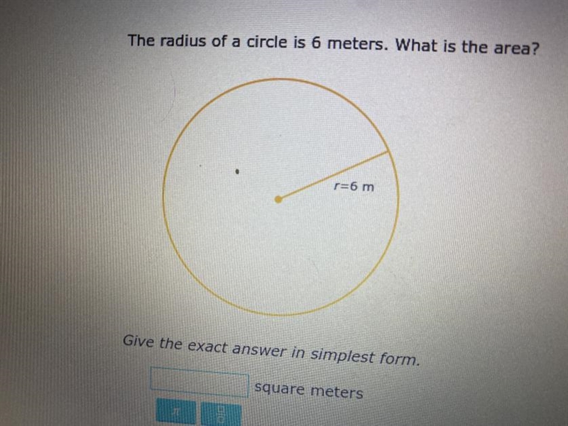 The radius of a circle is 6 meters. What is the area? Give the exact answer in simplest form