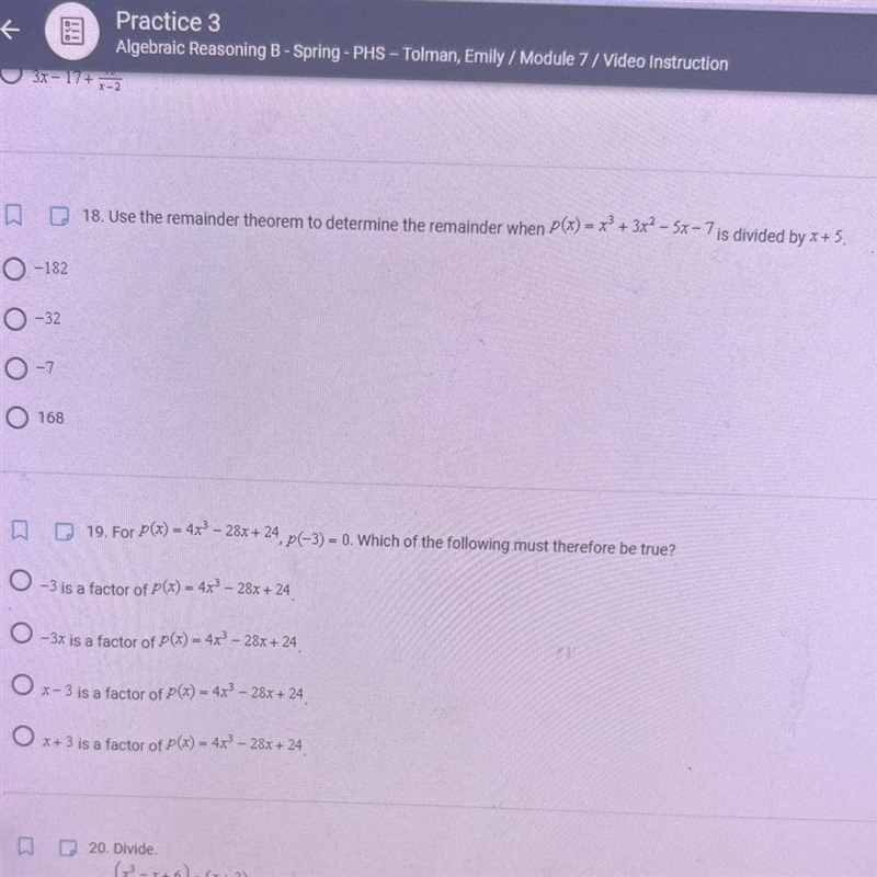 1st question, see attachment (-32 is answer). 2nd question, answer is (x+3).