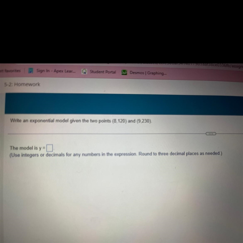 You want an exponential model that gives the two points (8, 120) and (9, 230).