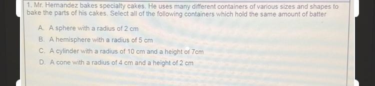 Mr. Hernandez bakes specialty cakes. He uses many different containers of various-example-1