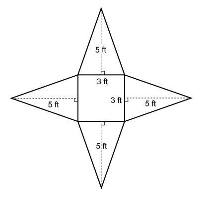 4(1/2)(3)(5) + (3^2) = 30 + 9 = 39 ft^2