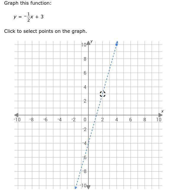 Next, we will use our slope. The slope is given as negative one-half. The slope can be read as "rise over run," this means we will rise -1 unit and run +2 units. In other words, we will move two units right and one unit down from each previous point. Here, we will then graph (2, 2), then (1, 4), and etc.