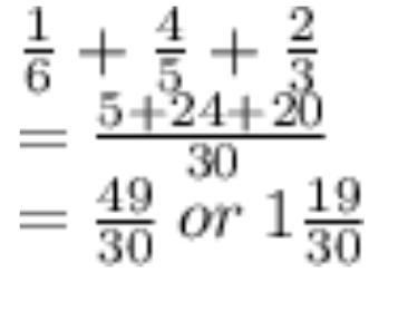 What is the sum of 1/6 4/5 and 2/3 as a fraction