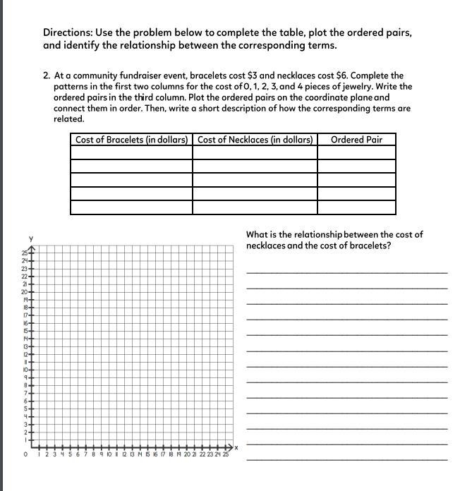c. Form ordered pairs from values in an input/output table. Graph ordered pairs from an input/output table on a coordinate plane.