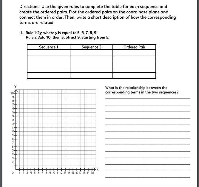 a. Generate two numerical patterns using two given rules and complete an input/output table for the data.