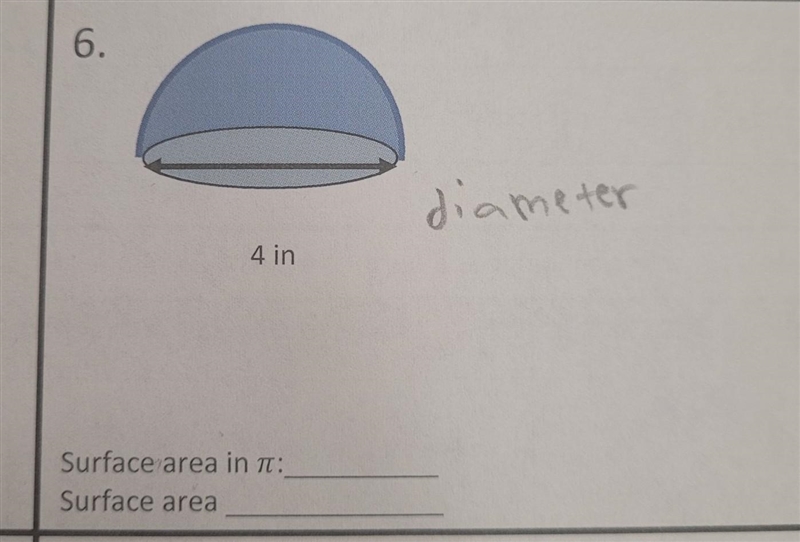 and the diameter is 4, divide it by two, and you will get a radius of 2.