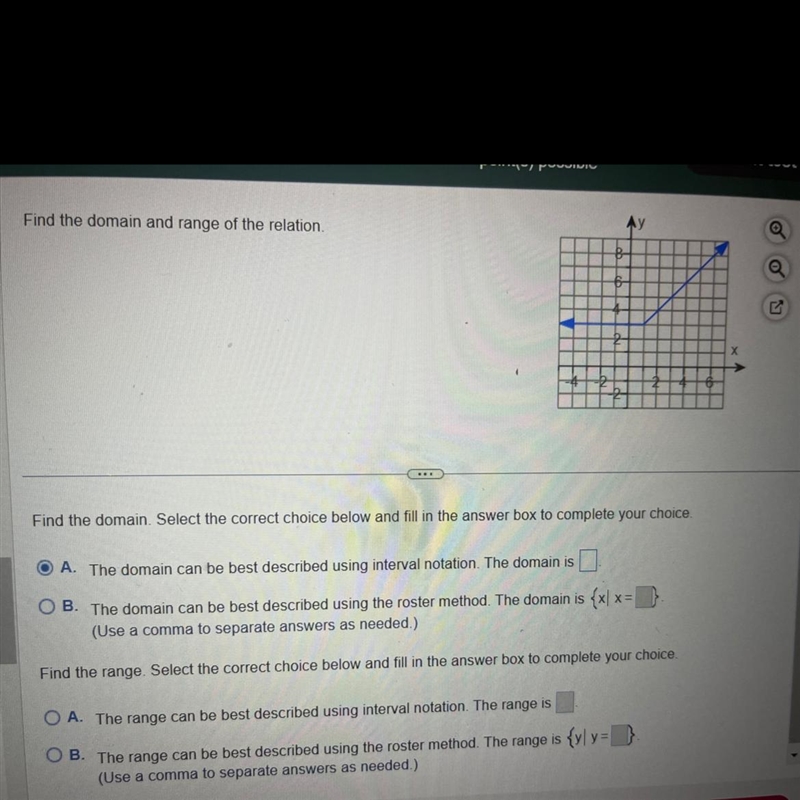 Range is the y-axis, or the vertical plane which we can see only starts at 3, then go infinitely. This would include 3, so it would be a bracket then a parenthesis. [3, ∞)