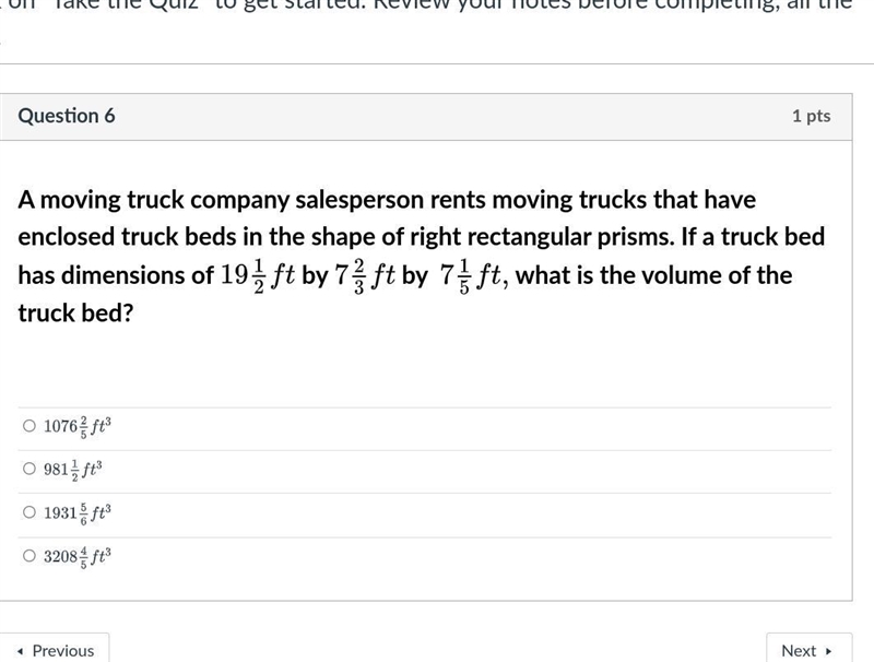 Last one Given the dimensions of the truck bed: