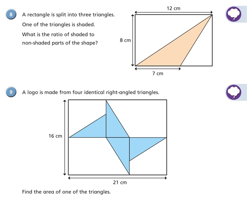 1) Total rectangle area = W x H = 12 x 8 = 96 cm^2
