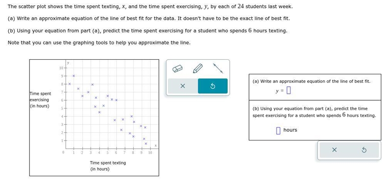 for a, draw a line around the middle of all the point like the average spot, and for b use that line to check where 6 hours meets the line and that’s the answer
