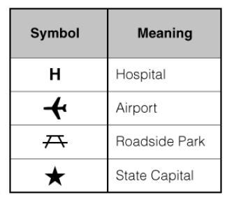 Maps often use symbols to represent locations. A list of possible symbols and their meanings are shown below. How many lines of symmetry does the symbol for a state capital have…