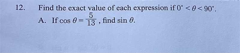 Since we know two sides of the right triangle which the cosine ratio is from, we can solve for the third side, opposite, using the Pythagorean Theorem.
