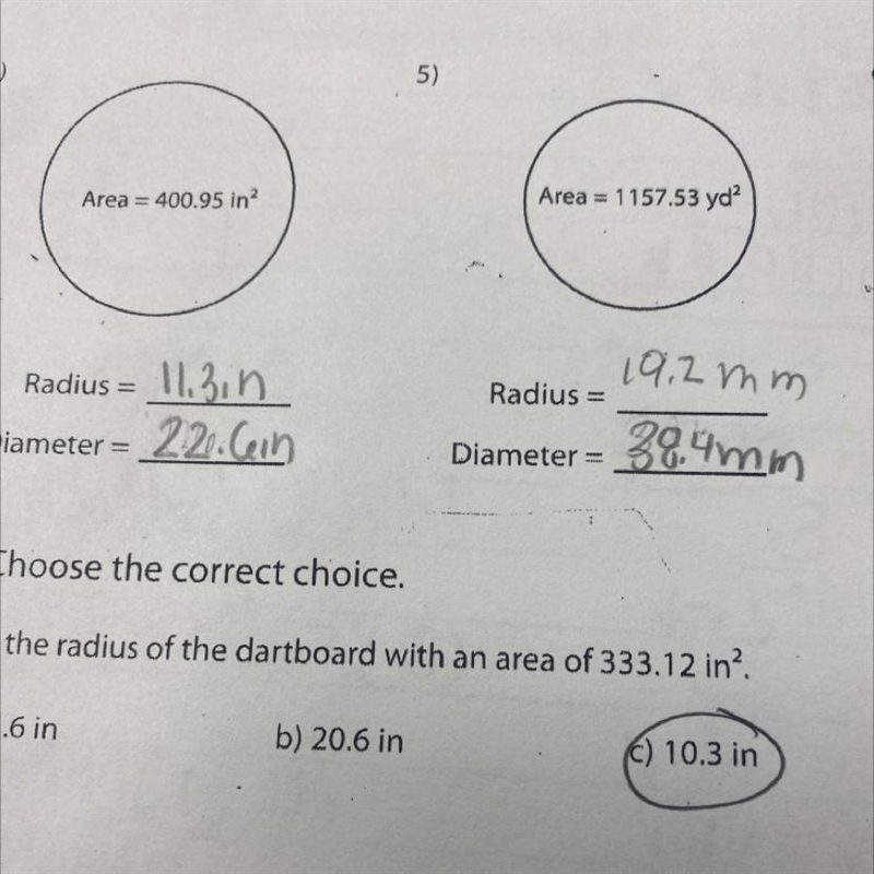 - A = 1157.53 yd² ⇒ r = 19.2 yd, d = 38.4 yd (note units)