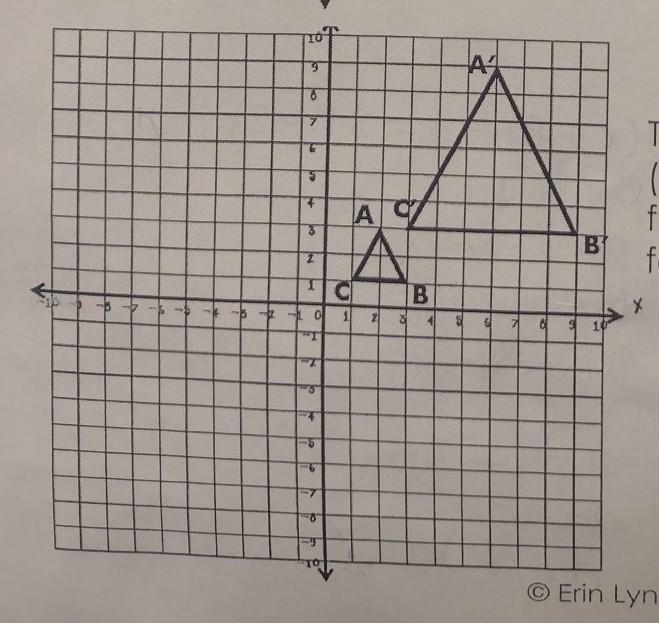 Triangle ABC has been ________ (Reduced or enlarged) with a scale factor of __________. Find the scale factor like this...