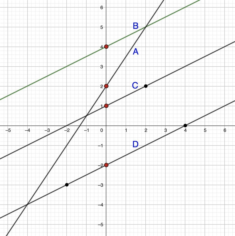 (b) The equation y = mx +b has b=4, so a y-intercept of 4.