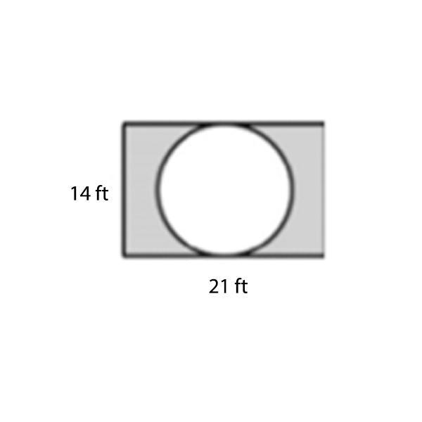 The next step is to find the area of the circle. We aren't given much information, except that the diameter of the circle is 14 ft because the 2 ends of the circle are at the ends of the width of the rectangle.