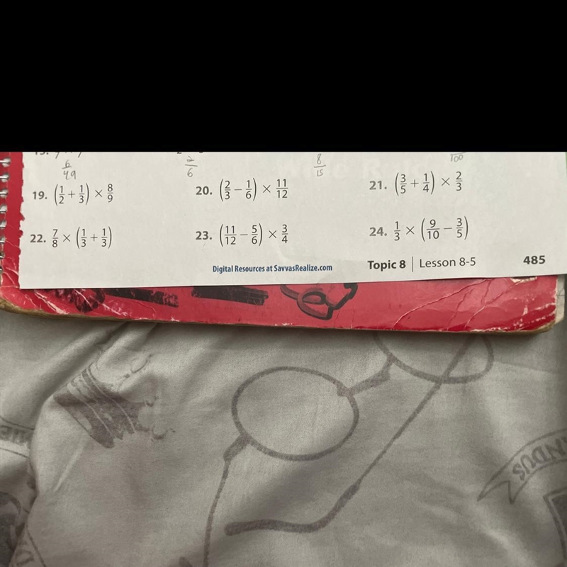 1. (3/6 + 2/6) x 8/9
