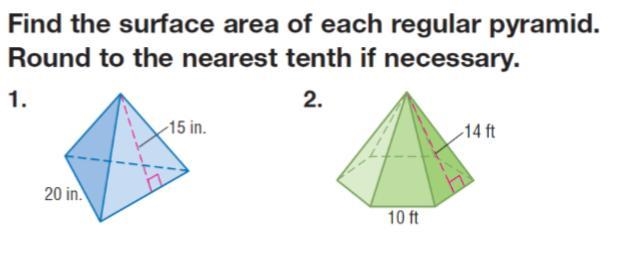 The lateral surface consists of 6 isosceles triangles each with a base = 10 in and height = 14 in