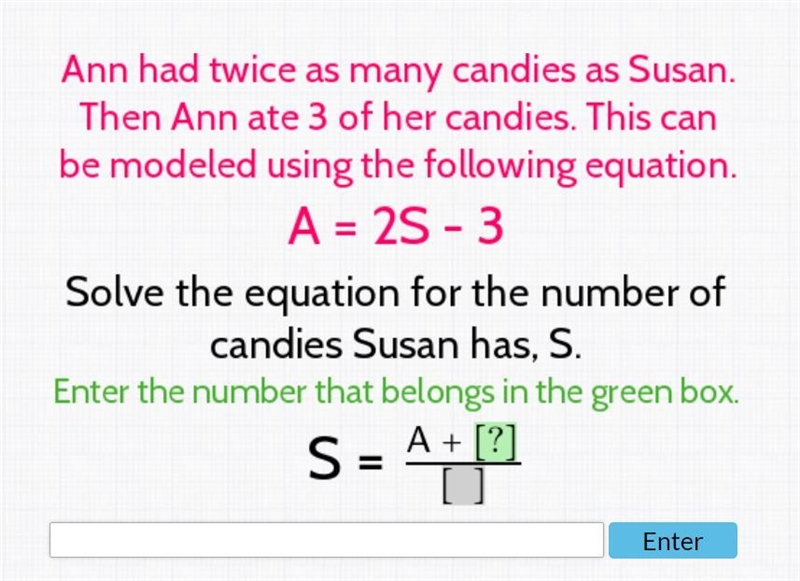 Step-by-step explanation: Isolate S by timesing it by 2, which means you have to times A and 3 by two and take S to the other side of the equation which makes the minus into a plus.