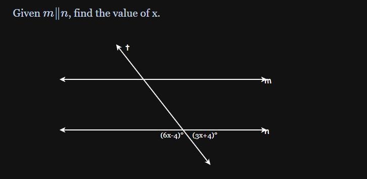 On line n, the two unknown angles are supplementary, so we need their sum to be 180° and we can find x that way: