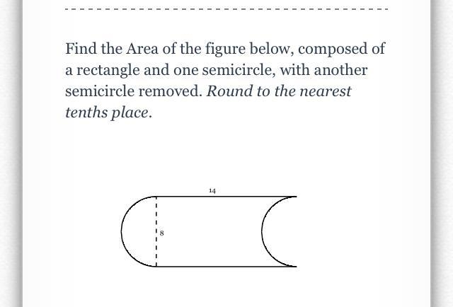 the semicircle removed is added on the the other end. so it is the same area as if the semicircle was not removed, ie a rectangle.