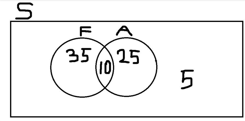 • F represent the number of students who studied French only, which is why I wrote 35 in this circle