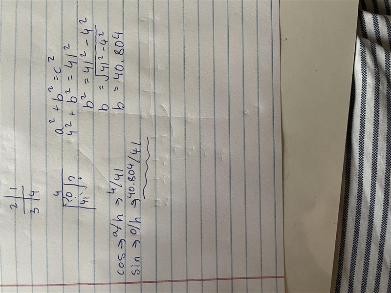 Consider this equation. cos(0) = 4/41 If 0 is an angle in quadrant IV, what is the value of sin(0)
