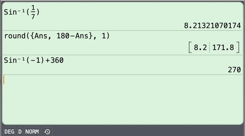 There are two values of θ in the range that have a sine of 1/7: 8.2° and 171.8°.