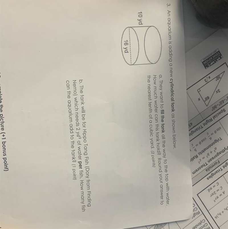 Given the cylindrical fish tank with a diameter of 16 yards and a height of 10 yards. We are asked to answer the following.