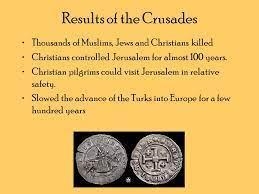 Explanation: European Crusaders made a lot of trips to the Middle East over the course of several centuries, and as a result, they created colonies and controlled areas there. Its influence may still be felt in the region's architecture, fine art, and literature down bellow there is more reasons