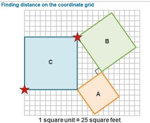 Since square C is a square, its sides are equal in length, so we can label the length of one side as x. Then, using the distances between the vertices of the blueprint, we can find the length of the diagonal as follows: