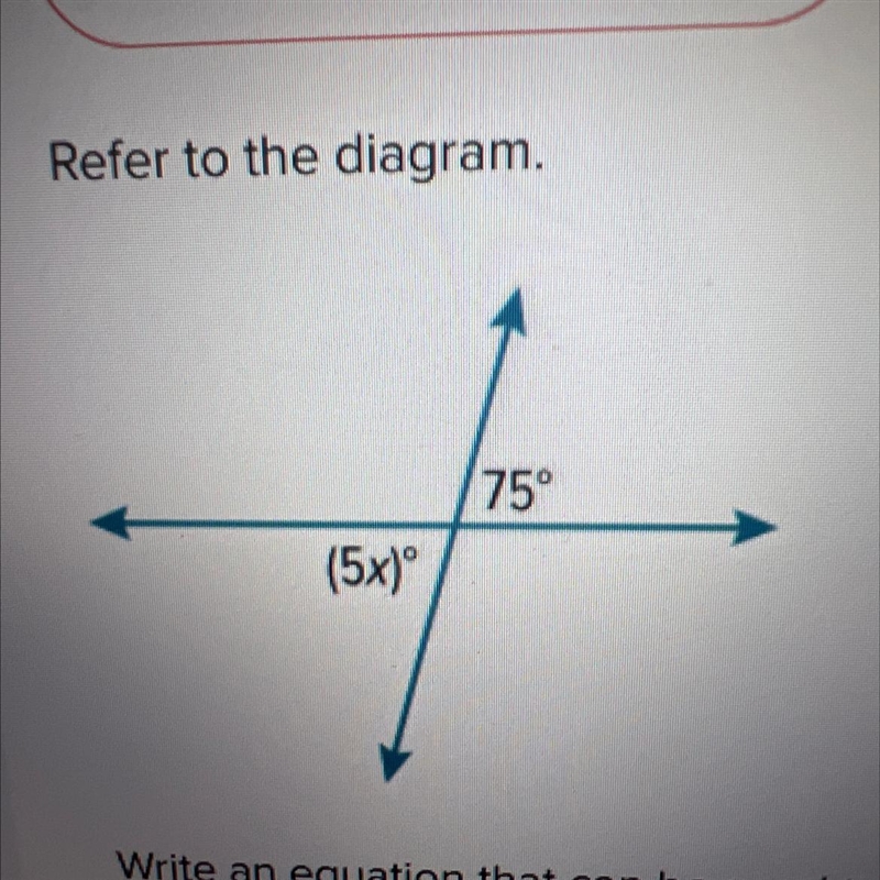 Refer to the diagram. 75° + (5x) Write an equation that can be used to find the value-example-1
