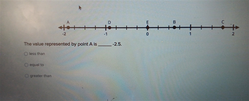 The value represented by point A is ____ -2.5 1. Less than 2. Equal to 3. Greater than