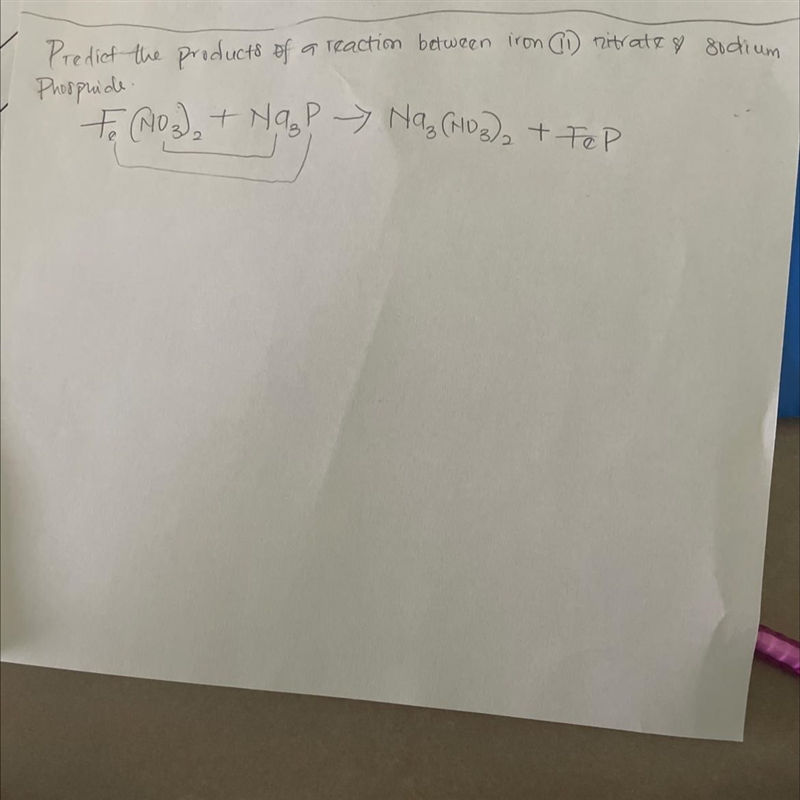 Predict the products of a reaction between iron (II) nitrate and sodium phosphide
