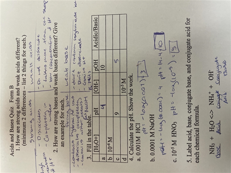 1 X 10^-4; 4; 1 x 10^-10, 10; acid