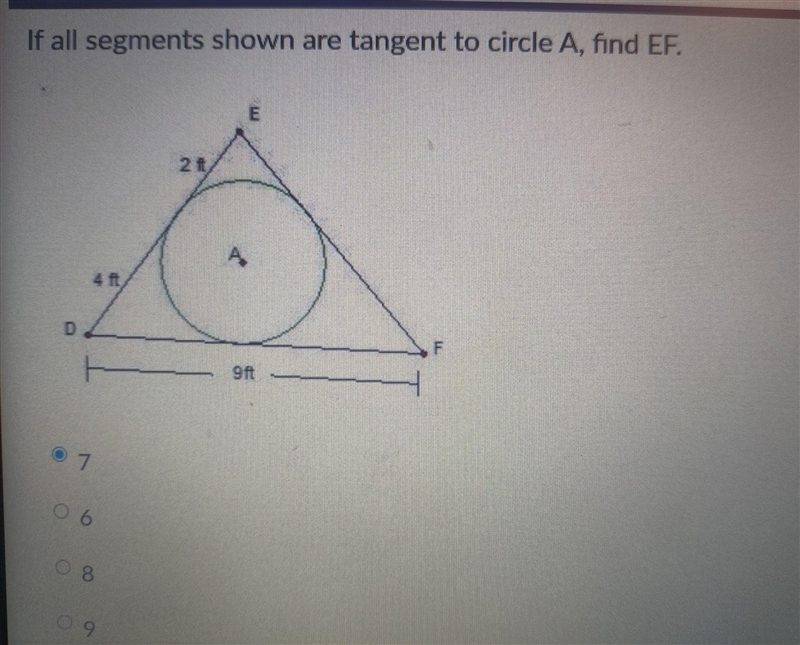 So the length of EF is 7 ft.