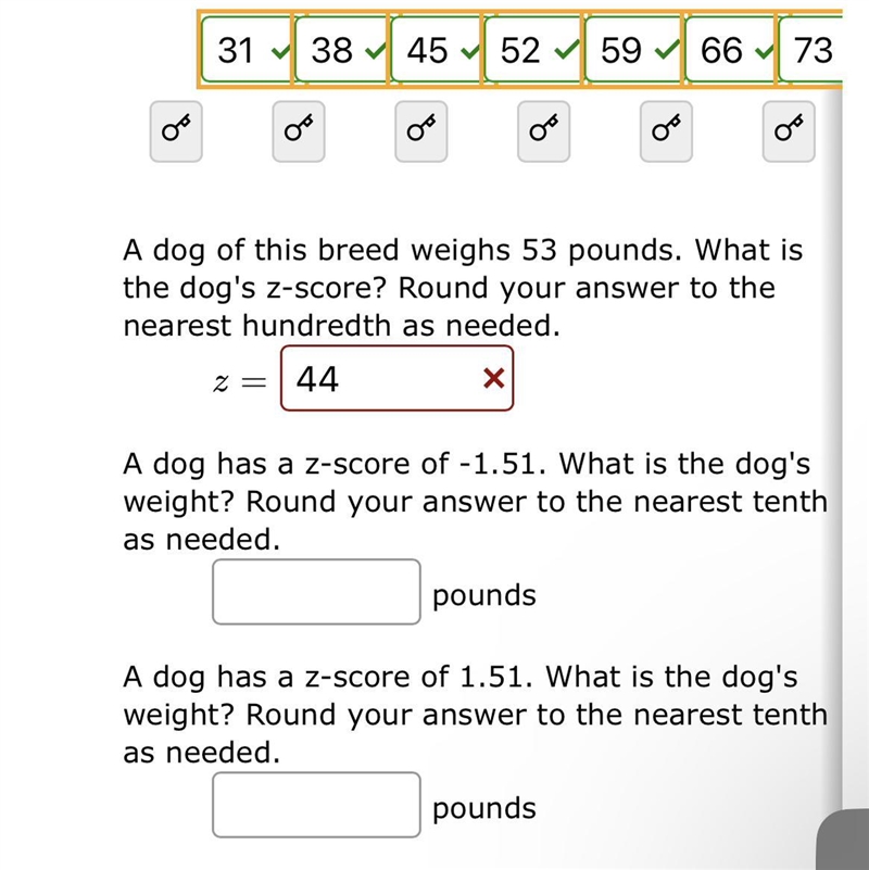 x = -1.51 (7) + 52 ≈ 41.4 lbs.