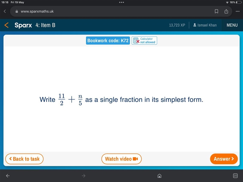 To write the expression (11/2) + (n/5) as a single fraction in its simplest form, we need to find a common denominator for the two fractions. The common denominator in this case is 10.