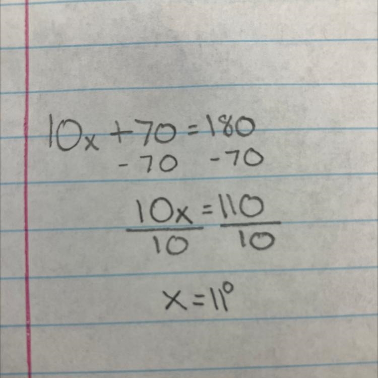 so 10x+70=180°