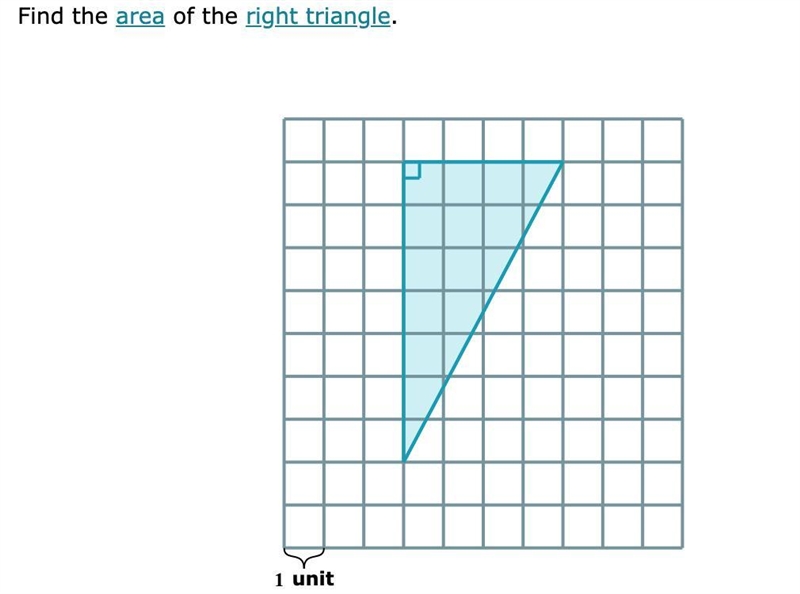The formula for a triangle is 0.5*lw, where l = length and w = width. Count the unit squares to find the length and width.