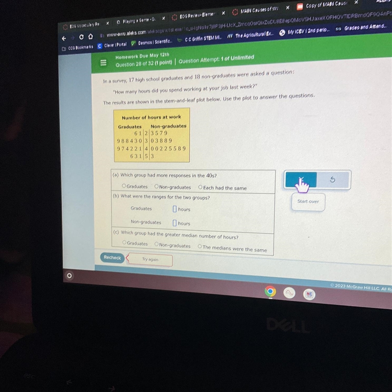 You want to compare various statistics related to Graduates and Non-graduates based on the given stem-and-leaf plot.