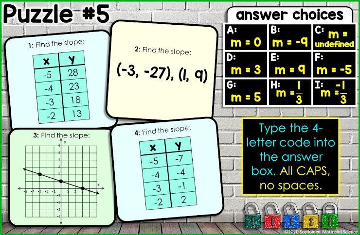 4) slope = (-7 - -4) ÷ (-5 - -4) = (-7 + 4) ÷ (-5 + 4) = -3 ÷ -1 = 3 (option D)